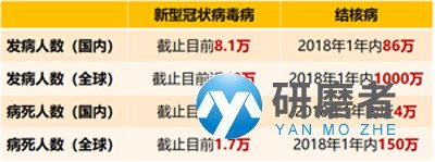 2017 年全球估計有 1 千萬人感染結(jié)核病,其中 160 萬人因結(jié)核病死亡,結(jié)核病每天會奪走 4500 多人的生命。根據(jù)中國疾控中心的數(shù)據(jù),中國每年結(jié)核病的發(fā)病人數(shù)為86萬左右,是當(dāng)下國內(nèi)新冠肺炎確診人數(shù)的10倍!